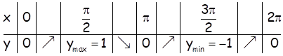 Ток функције на основном периоду дат је табелом, а график на слици.