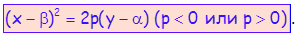 Једначинапредставља коначни облик једначине параболе, која припада десној полуправи, има теме у координатном почетку, а оса јој се поклапа са осом.