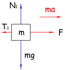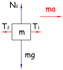 Ако посматрамо 1. тег, према II Њутновом закону за правац кретања: