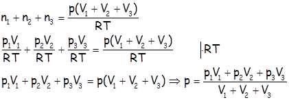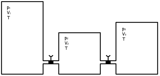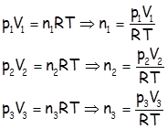 Након отварања славина долази до мешања гаса из сва 3 балона а укупан број молова је: