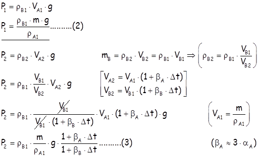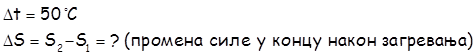 Једначине равнотеже сила за стања после и пре загревања су: