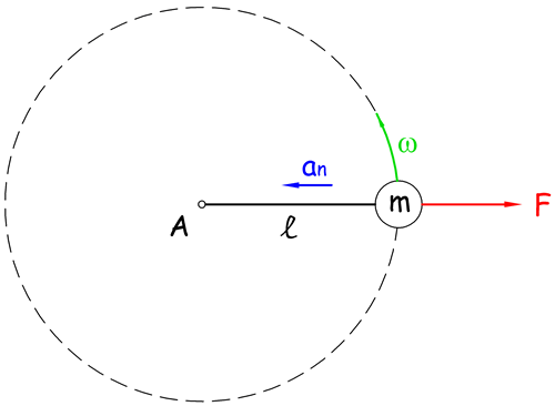 Током обртања куглице око тачке А жицу затеже центрифугална сила
