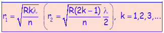 Полупречници тамних (светлих) Њутнових прстенова (сл. 2):