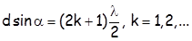 Ако је:(- удаљеност заклона од извора;- растојање међу изворима;- угао под којим се види неки максимум или минимум)