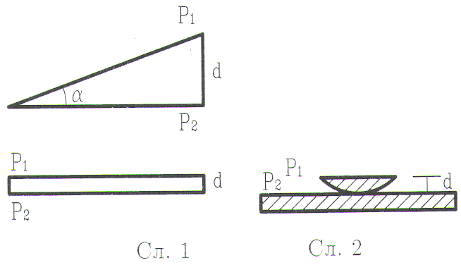 Услов за добијање интерференције у одбијеној светлости ако је са обе стране клина, односно слоја (сл. 1) оптички ређа средина:
