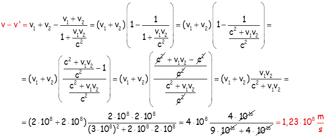 Према релативистичком закону сабирања брзина, када се честице крећу једна другој у сусрет: