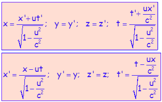 ((x, у, z, t) - координате догађаја у систему S; (х', у', z', t') - координате истог догађаја у систему S').