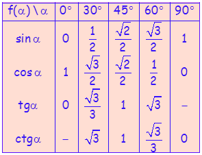 Основна својства тригонометријских функција оштрог угла