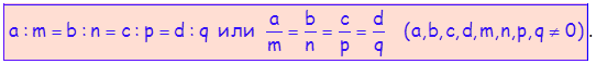 Продужена пропорција. Једнакост три или више размера назива се продужена пропорција. На пример