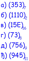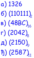 Примедба 2. За записивање бројева у бројевном систему са основом