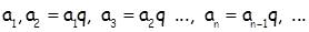 Бесконачан низ реалних бројева је геометријски низ ако је сваки његов члан, почев од другог, једнак геометријској средини њему суседних чланова. Да би бесконачан низ реалних бројева, чији је први члан различит од нуле, био геометријски низ чији су сви чланови различити од нуле неопходно је и довољно да постоји реалан број, различит од нуле (који се назива количник геометријског низа), такав да се сваки члан низа, почев од другог, добија множењем њему претходног члана са: