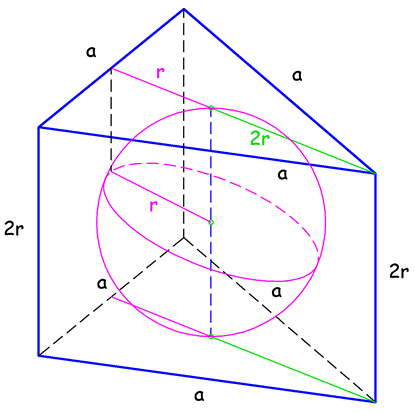 . Лопта додирује основе у тежиштима троуглова, а бочне стране у центрима правоугаоника.