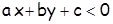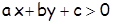 Нека је у Декартовом координатном систему права линија задата општом једначином. Тада за координате свих тачака М(х, у) који се налазе са једне стране ове праве важи неједнакост, а за координате свих тачака М(х, у) које су са друге стране праве важи неједнакост