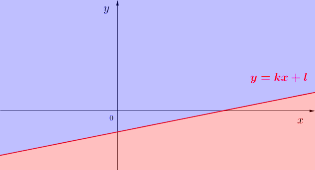 Ако је у Декартовом правоуглом систему права задата једначином, тада се све тачке М(х, у) за које јеналазе у полуравни „изнад“ ове праве, а све тачке М(х, у) за чије координате важиналазе у полуравни „испод“ ове праве (видети слику).