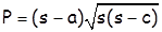 (Херонова формула; s - полуобим троугла)