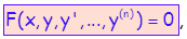 непозната функција, назива се диференцијална једначина реда n. Свака функција