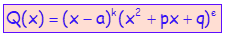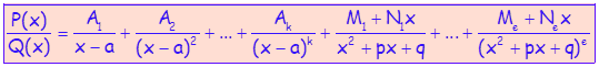 где јереалан вишеструки корен полинома, авишеструки комплексни корени, онда се разломак (1) раставља на парцијалне разломке: